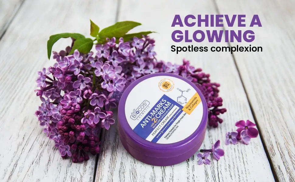 Our Anti Marks Cream targets dark spots, acne scars, fine lines, and uneven skin tone. Powered by Azelaic Acid and Niacinamide, it brightens and evens skin while reducing blemishes. This cream also tightens and smoothens the skin, offering anti-aging benefits for a youthful, radiant complexion.