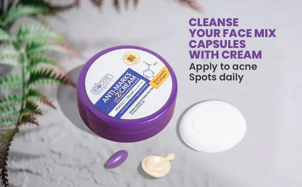 2- Mix niacinamide capsule and collagen whitening capsule into the anti-marks cream until smooth.